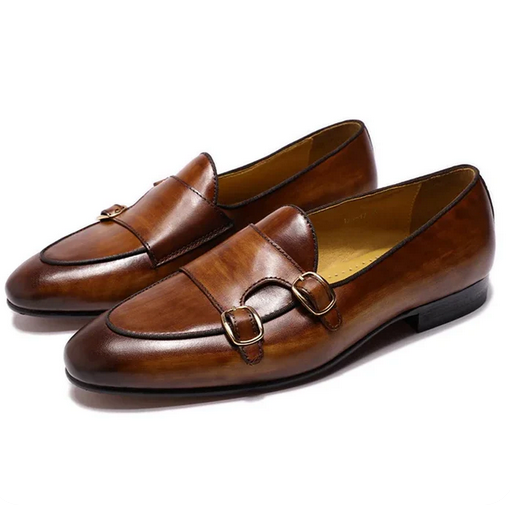 Elegant Men's Stylish Monk Strap Shoes Comfortable Genuine Leather Daily Wear Business Casual Buckle Luxury Dress High Quality