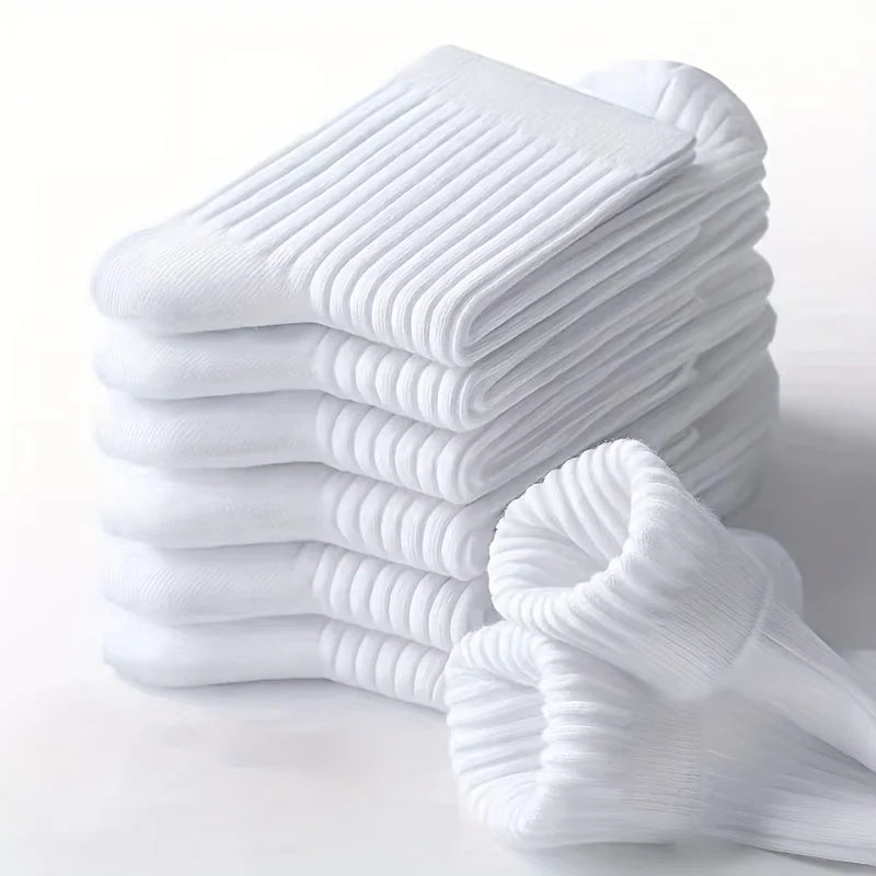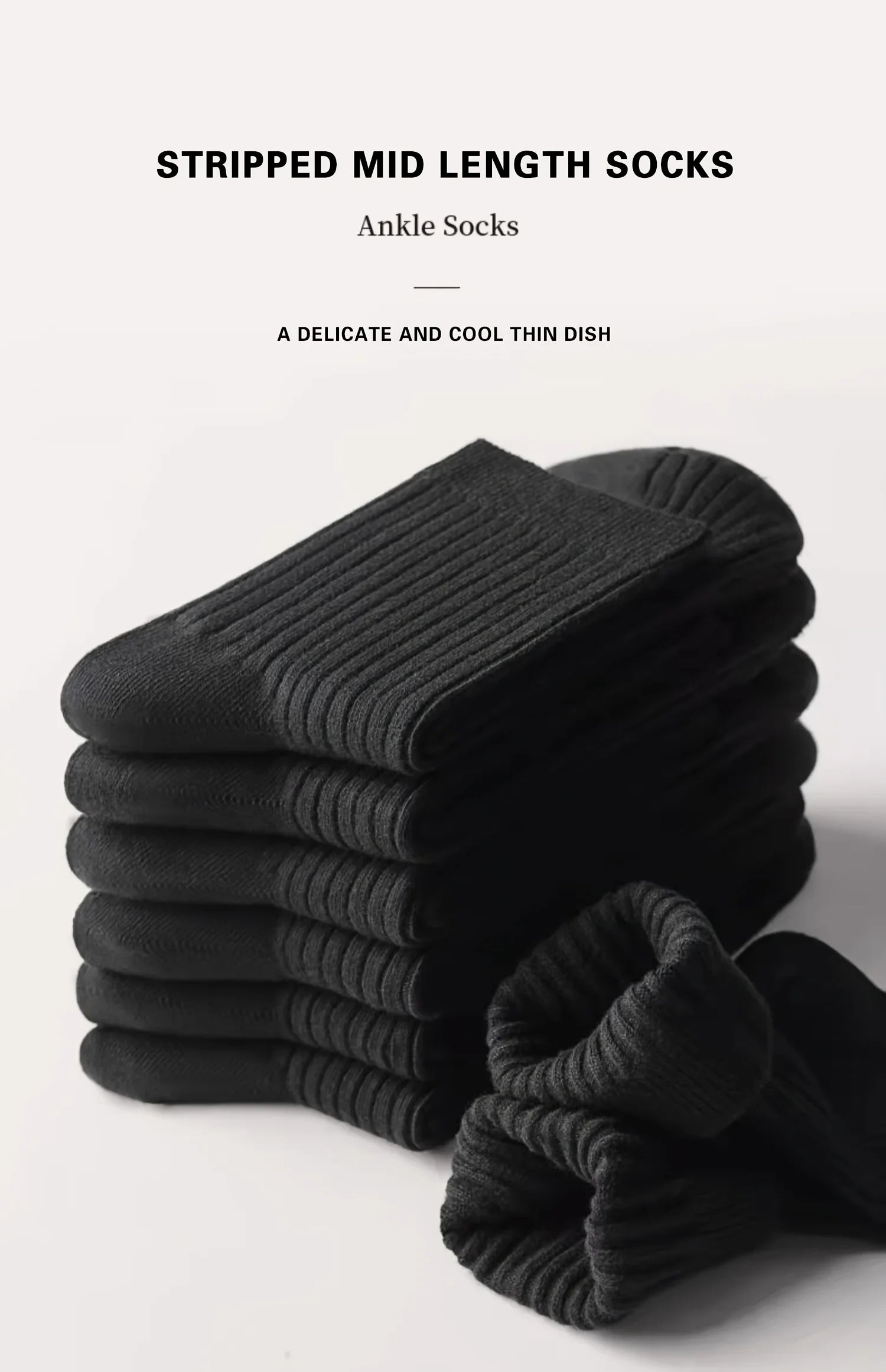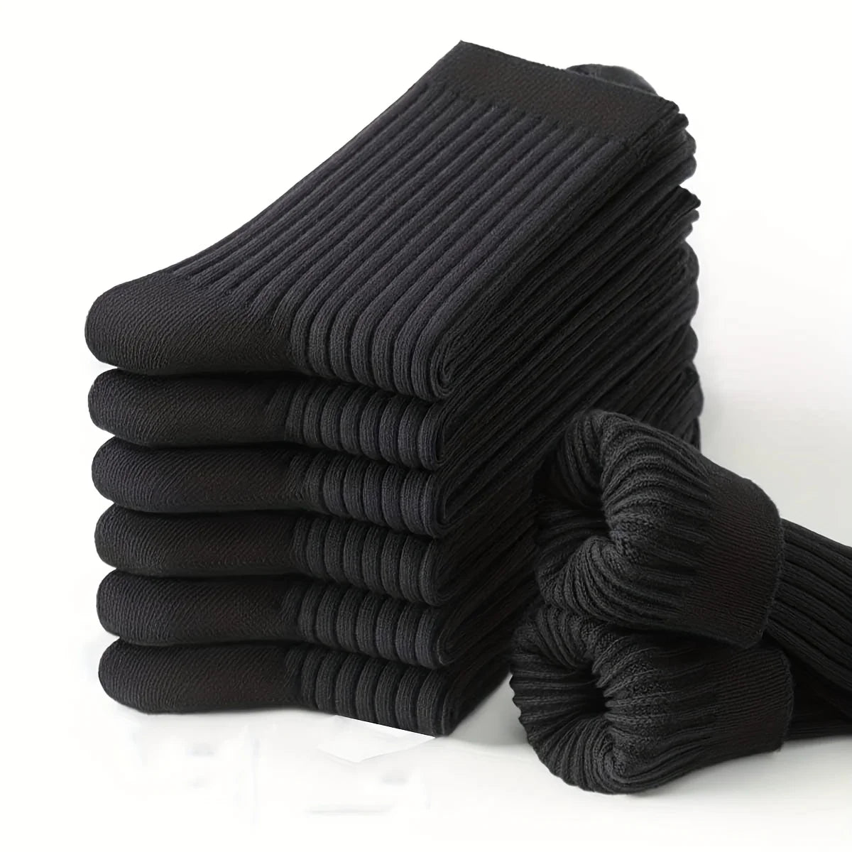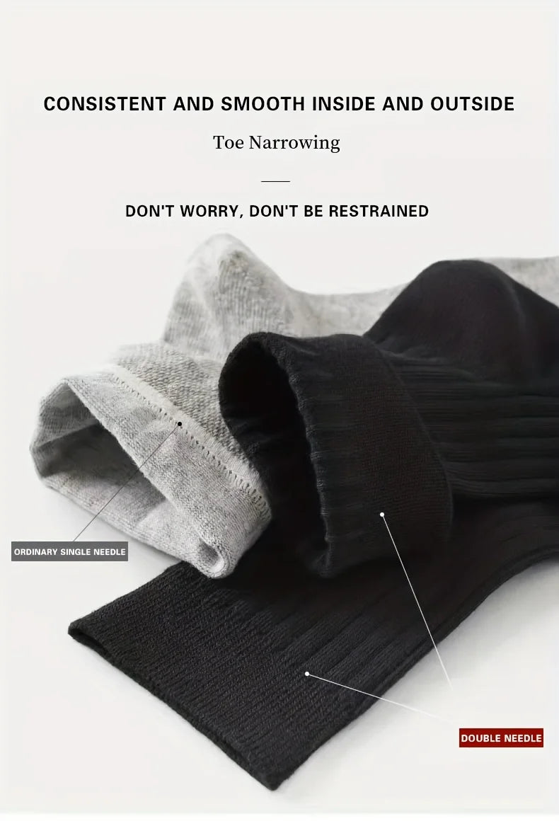 6 Pairs of Men's Pure Color Vertical Pattern Mid-Calf Socks, Versatile Black Socks for Business All Seasons, Breathable