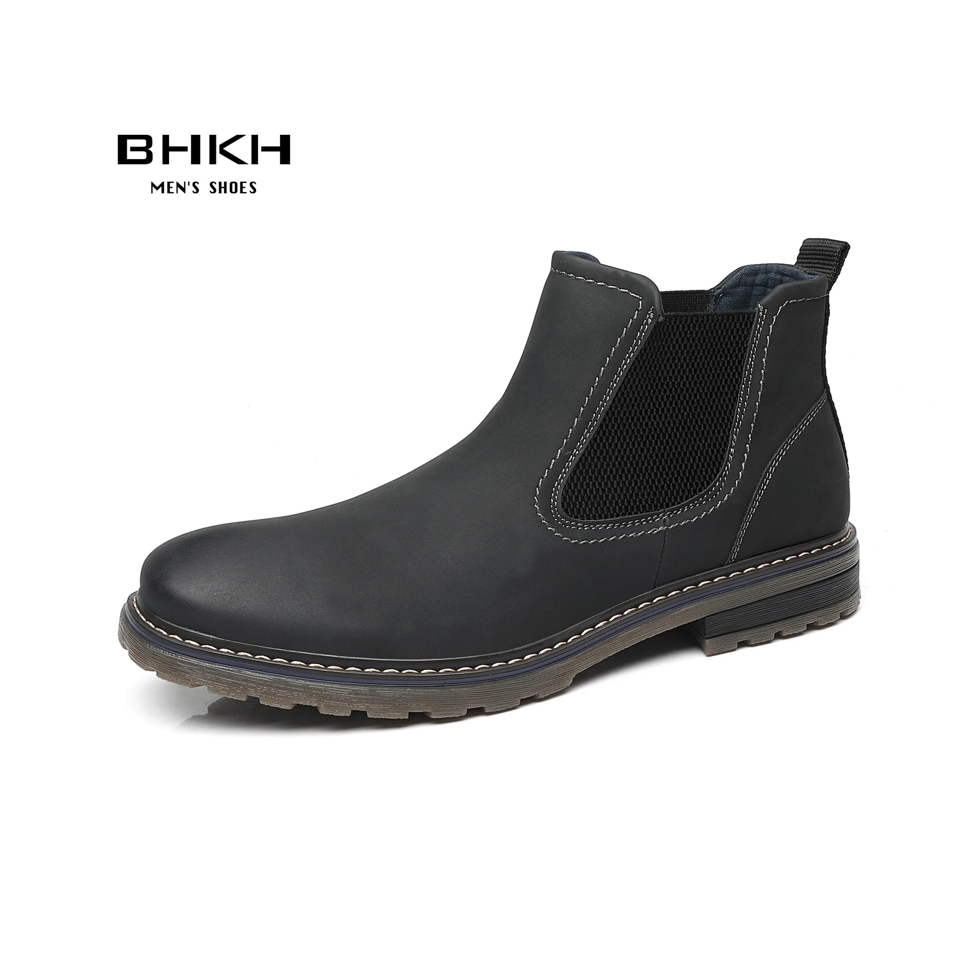 BHKH 2025 Men Chelsea Boots New Winter Men Boots Soft Leather Elastic Strap Ankle Boots Smart Formal Business Casual Man Shoes