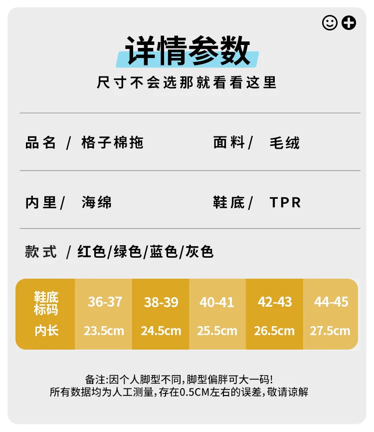 New Men's Striped Warm House Fleece Cozy Non-slip Plaid Cotton Mops Couples Slippers Winter Soft Indoor Bedroom Couples Shoes